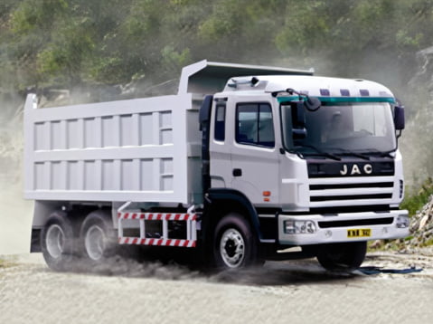 - JAC Muldenkipper (6x4 Radkonfiguration, Kapazität 17 t, Motorvolumen 11,5 L, Motorleistung 375 PS, Tankvolumen 350 L).