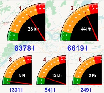 Inoltre, il dispositivo di tracciamento riceve dati aggiuntivi – temperatura del carburante e velocità del motore (dal tachimetro). Le informazioni dal dispositivo di tracciamento vengono inviate al computer del servizio di spedizione, in modo che possano vedere la posizione della nave e i dati sul consumo di carburante in tempo reale. Tutti i dati sono disponibili su un cruscotto virtuale del servizio telematico ORF4. L'interfaccia flessibile del cruscotto consente di visualizzare i dati in qualsiasi forma conveniente: grafici, numeri, indicatori a freccia, scale.
