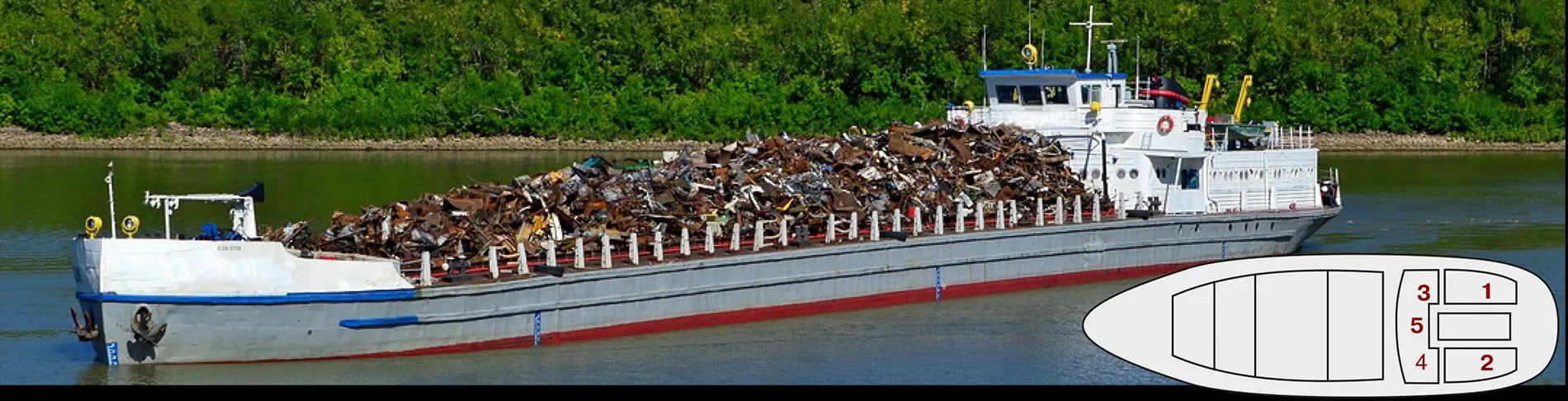 1) Motore sinistro, 2) Motore destro, 3) Generatore diesel principale, 4) Generatore diesel di riserva, 5) Caldaia