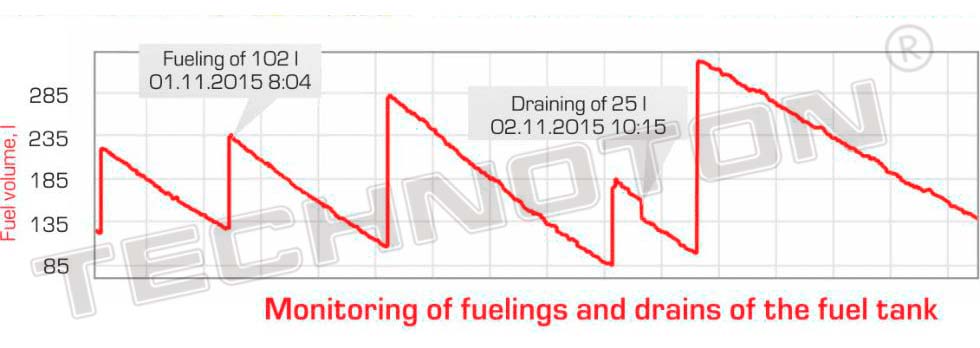 Tale sensore fornisce il controllo del carburante 24/7, rilevando tutti i rifornimenti e i drenaggi non autorizzati ( furti di carburante), dati estesi sull'uso di carburante del singolo veicolo e, se utilizzato sull'intera flotta, , c'è la possibilità di un'analisi approfondita del consumo di carburante e lo suo ottimizzazione e economia.